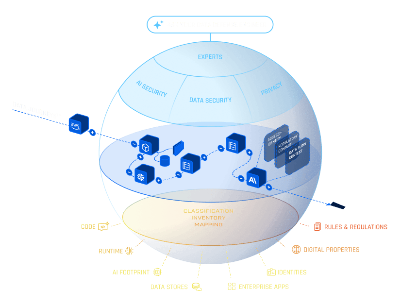 Lyo™ is an AI-native data defense engineer. It traces every data journey from code to cloud to AI model, tells you what your data is doing, who is accessing it, and why. Then it empowers you to act before incidents happen.